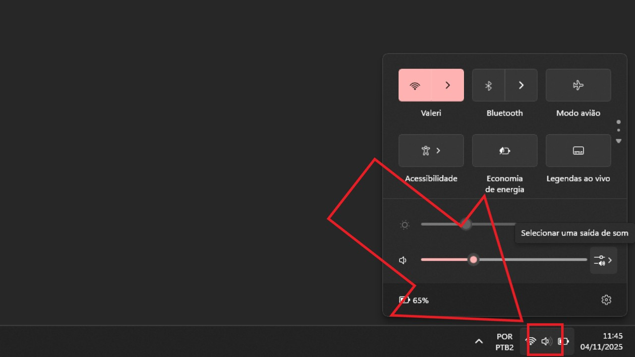 Passo 01: Clique no símbolo de alto-falante embaixo no canto direito da tela.