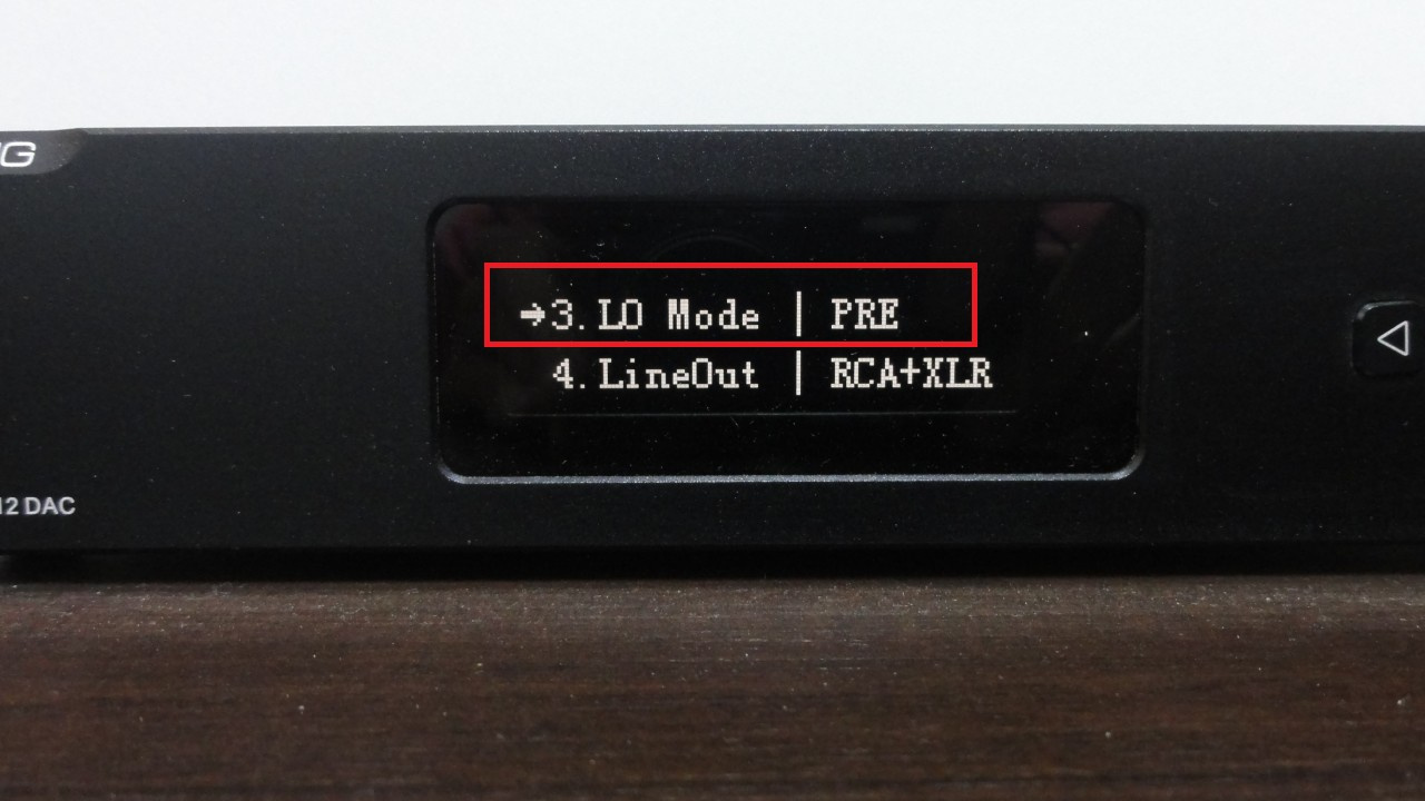 Cada DAC possui uma forma de habilitar e desabilitar a função de pré-amplificação. Abaixo uma imagem do menu do DAC Topping D70S.