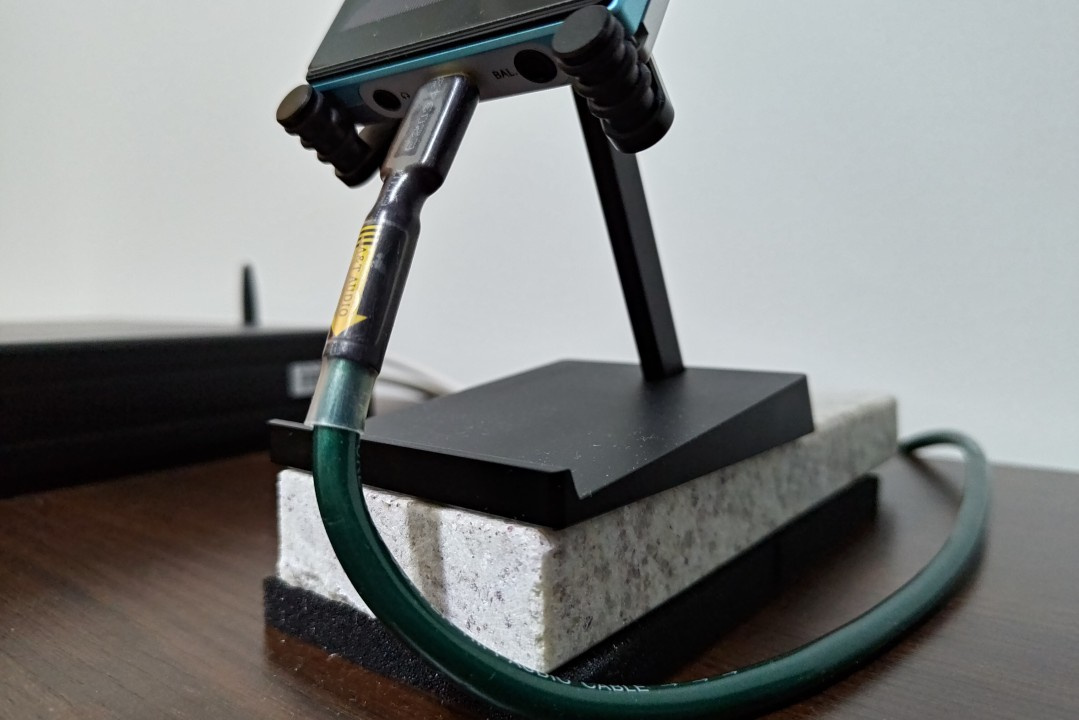 Até aqui, tudo parece estar correndo bem e o HS110SE seria o suporte para MP3 Players (DAPs) perfeito. Porém, infelizmente ele possui uma pequena limitação devido à uma decisão de design tomada pela DDHi-Fi. Dependendo da forma como você utiliza o Digital Audio Player, a altura do suporte de mesa da fabricante chinesa pode ser um problema, conforme mostro a seguir.