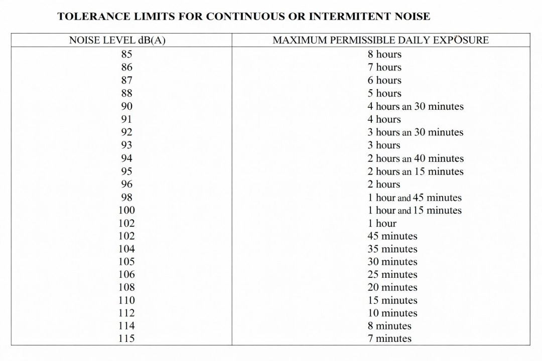 According to the table “Tolerance limits for continuous or intermittent noise” in Annex 1 of NR-15, depending on the duration of exposure and the noise level, it may be dangerous to remain in a given environment without any hearing protection for a “prolonged” period. For example, if the workplace has constant noise at an intensity of 85 dB, hearing damage may occur if exposure exceeds 8 hours.
