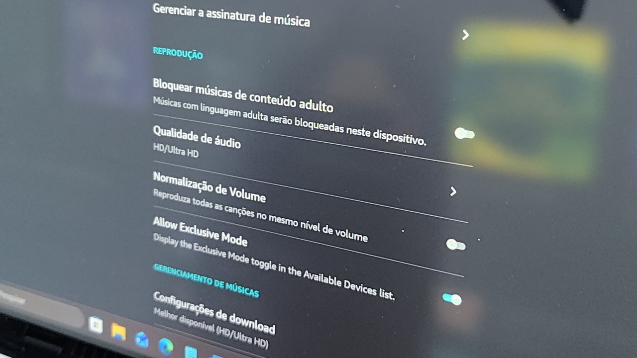 Amazon Music app settings screen on a Windows 11 laptop (Image: Vitor Valeri/Hi-Fi Hub)