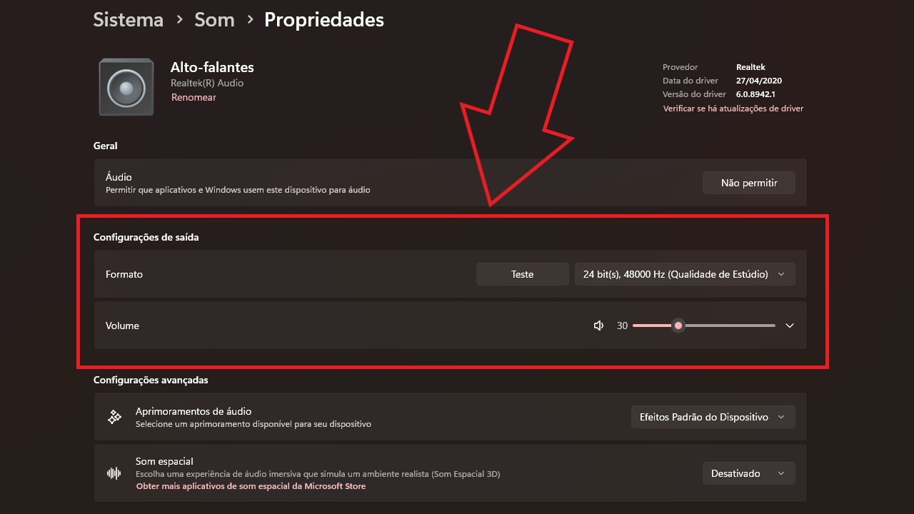 Screenshot of the Windows 11 operating system audio mixer (audio controller) output settings page (Image: Vitor Valeri/Hi-Fi Hub)