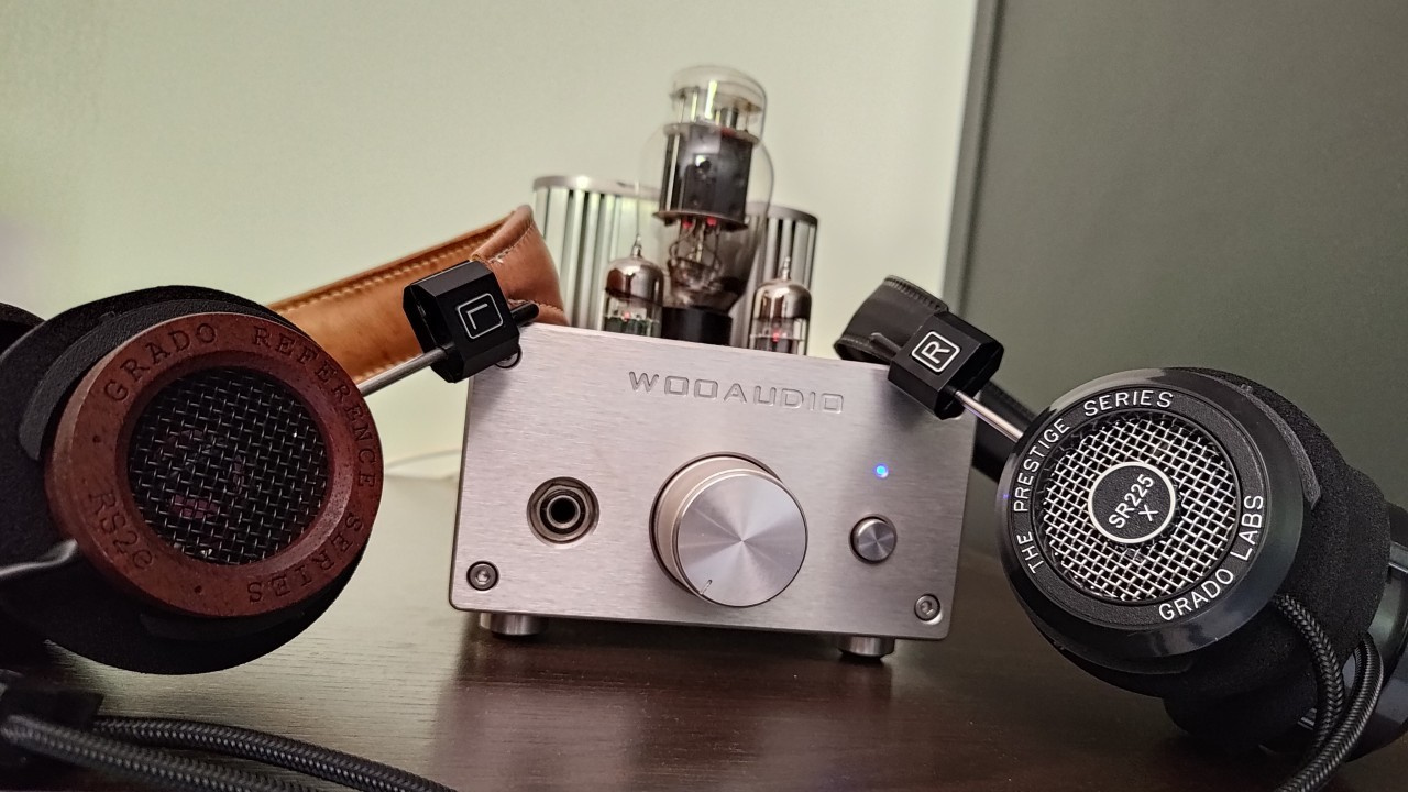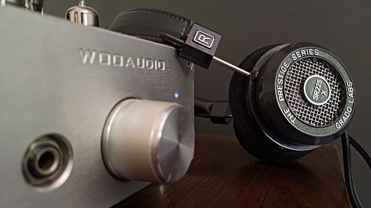 Grado SR225x headphone resting on the Woo Audio WA3 amplifier (Image: Vitor Valeri/Hi-Fi Hub)