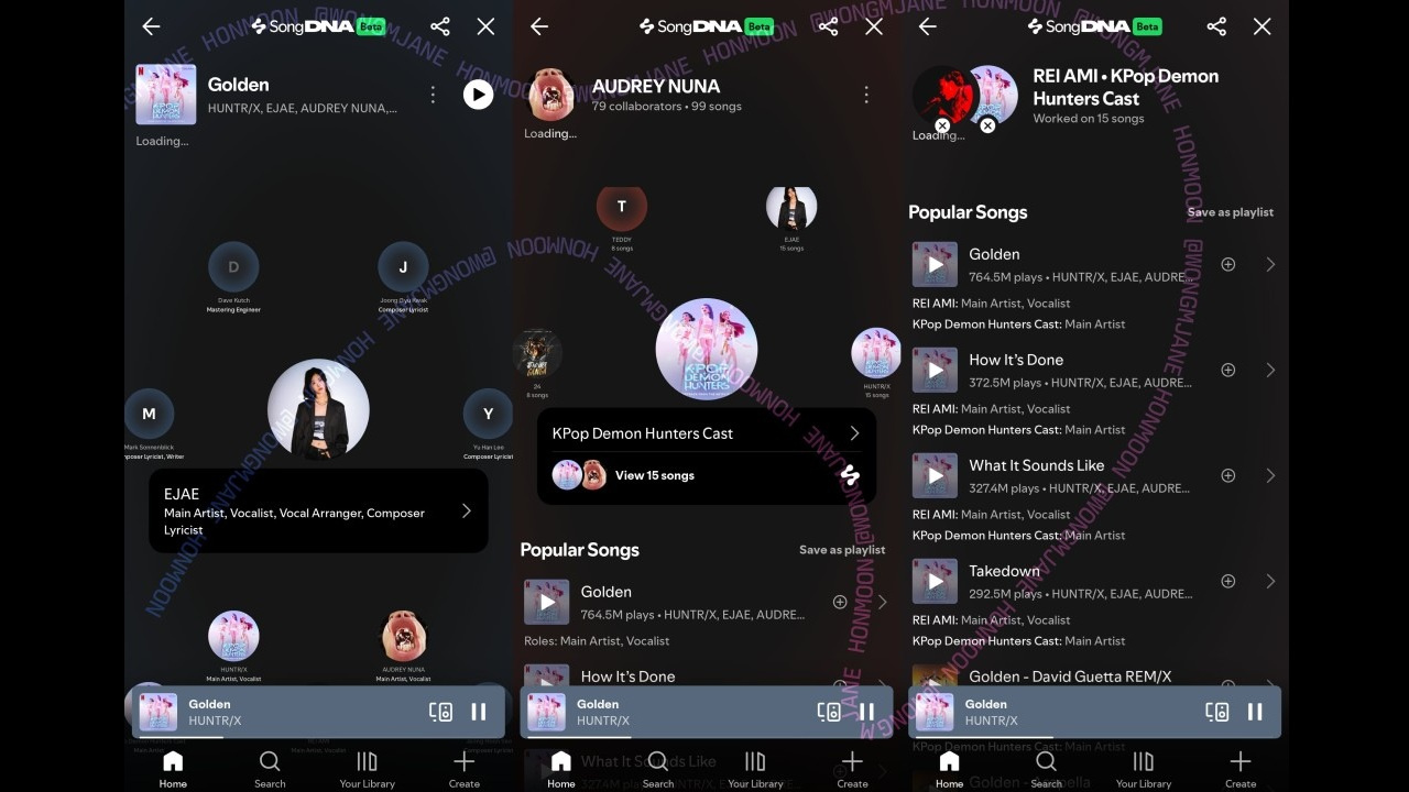Nas capturas de tela de Wong, é possível ver que a cantora Rei Ami, que participou da trilha sonora de “Kpop Demon Hunters”, tem sua voz presente em diversas faixas fora das feitas para o filme. Há muito tempo o Tidal permite aos usuários acessarem os créditos de cada música e selecionar qualquer colaborador para acessar uma página exclusiva com os trabalhos em que o profissional já participou.