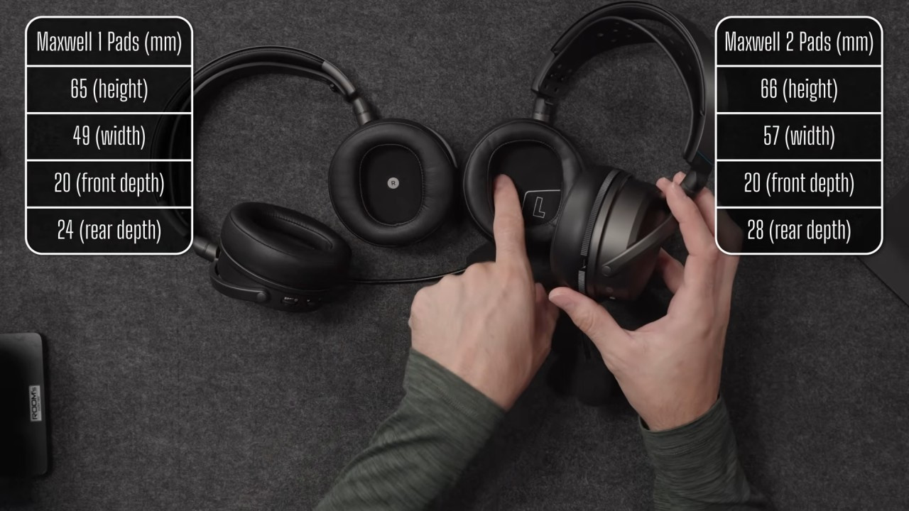 Dimensões das ear pads do Audeze Maxwell 2 comparado à primeira versão (Imagem: GadgetryTech/YouTube)