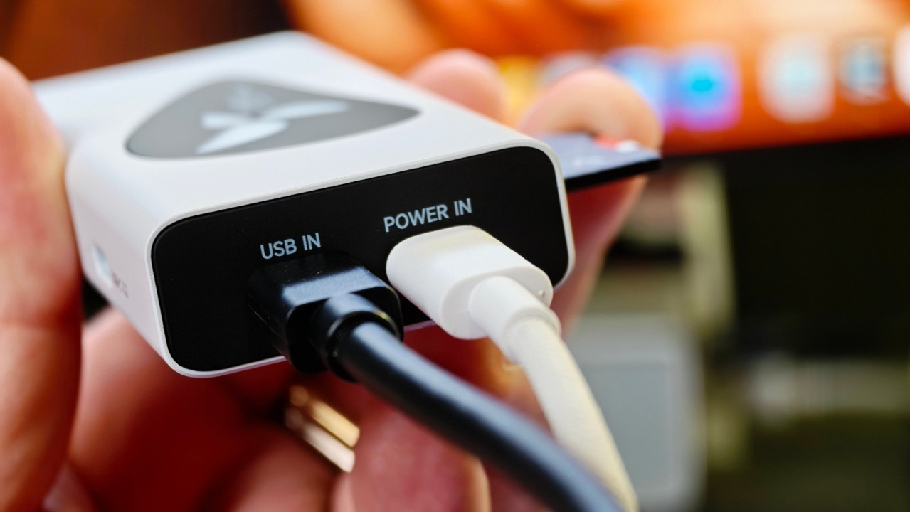 A função principal do Hiby AP10 é isolar o sinal de áudio e a alimentação transmitidas pela porta USB do computador. Porém, ele conta com várias conexões USB-C e USB-A, além de um leitor de cartões SD.